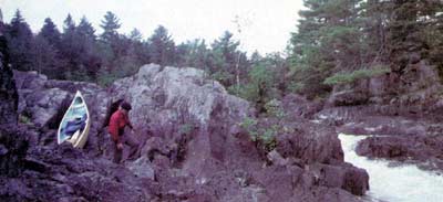 steep rapids or falls may force a difficult portage that cuts