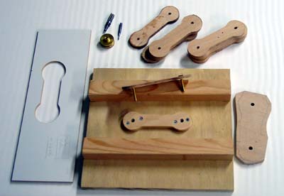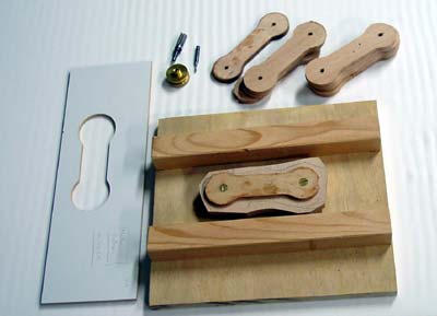 I made a separate jig to allow making a bunch of dog bones. I rough cut the dog bone pieces on the band saw and drilled two clamp holes that matched the pattern. The clamp holes let me use a flat head screw to clamp the pattern to the rough cut dog bone piece. I ran the router around the pattern to make each dog bone. See figure 4.