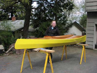 I built the boat for my daughter Kari as her high school graduation present. At her graduation party she had it out on the deck with balloons tied to the bow and stern padeyes! She even posed for pictures next to her boat. She is off at college now and the boat is sitting in the shop waiting for some paint touch up this winter. Years from now she will have the boat at her own house and hopefully think of her old dad, the boatbuilder, when she takes her own kids kayaking. She was the only one at her school who got a boat for graduation. There were lots of jealous kids!