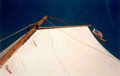 gaff jaws get hung up on the shrouds when the mainsail is let