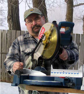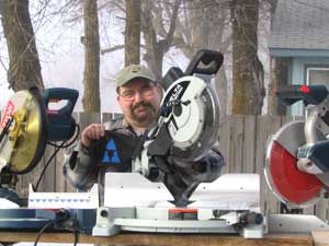 The Ryobi model #1551DXL (Editor's note: You can win this saw in our latest design contest. Thanks to John, the company donated it to Duckworks) comes with a laser kerf sight system called Exactline, a clamp and dust bag with a vacuum hookup. It also has sliding extensions for longer boards with an adjustable stop included. The blade was very surprising in the smoothness of cut it provided for the small amount of teeth that the blade has. With the low cost of this saw it would be perfect for someone who needed the capacity but didn’t want to break the bank. Freud graciously provided one of their 72-toothed 12” thin kerfed saw blades to use as an aftermarket test blade to see what a good blade could do for the saws I have for testing. With this blade mounted on the Ryobi 1551DXL and with the saw in perfect alignment, this saw could equal in exactness any cut of any non-sliding saw in this test. Although it could not match the size pieces that the other saw could cut, it was on the money as far as miter angle and smoothness. If you can’t afford a dual compound saw or a slider this saw is a perfect choice. For the student or person on a fixed income like myself this is a great saw. Even without an aftermarket blade I was amazed at the precise angled smooth cuts it produced. I give this saw a very high "must have" rating and with a great blade it is a superior saw at a discount price. It comes with all the options most high-end saws don't have included like material extensions and a clamp. I also have to mention that most high-end saws can also improve their blade quality to improve their cutting ability. The laser on this saw is a great addition that helps so much. You can never mistake where the blade will cut unless you have your eyes closed and I would not recommend that unless you want the nickname “Stubs”.