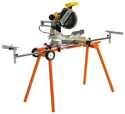 I have searched and looked at over twelve models of miter saw stands. Among them I have seen first hand the DeWalt but it has no wheels, the Bosch stand, it is very mobile but expensive, the Ridgid stand was less expensive but after spending nearly $700 on a saw, a discount would be nice. The factory stands are very good but if you are like I am I want the least expensive with the best features. I found one that has everything I need and even more. The Port-A-Mate 4400 by HTC is as close to perfect as any stand out there. It costs fewer than $100 but has the features of stands three times that price. It has wheels to move it around and folds up for compact storage. In the pictures of the miter saws together they are sitting on that same stand.