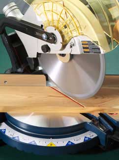 For all these reasons of accuracy and up front controls I give the Bosch saw my “must have” award. These sliders all use the belt system for driving the saw blades. If the majority of companies use this system on their saws there must be a good reason. Only one of these sliding saws has a factory-mounted laser for marking the cuts. If you want a laser you can add it to your favorite saw. I added the Avenger laser kerf sight to the Bosch and it works out great. Once you try one you’ll wonder how you ever got along without it! The stock blade on the Bosch is outstanding (the part number is 2610915721). I did use the other aftermarket blades on this saw but the only way to make a smoother cut with this assortment of high quality blades would be to cut the wood with a laser and then the saws would be a moot point.
