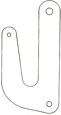 A Davey Hook is a simple item, which has many uses on a small boat, particularly when sailing single-handed. The original, as used by Navies on big ships, was a forged, heavy item (pic #1), but we small craft sailors can easily make our own version from a 6 x 3 ins piece of 1/4 or 3/8 ins thick steel or brass (pic #2). This size is ideal for boats up to 30 or 40 feet long.
