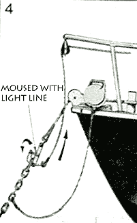 Pic #4 illustrates a way to use the hook for dropping a buoyed mooring from the cockpit, after cutting away the mousing, of course.
