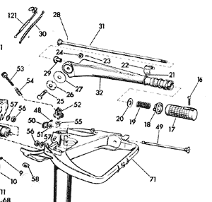 ...a parts diagram showing the "flipper handle" warm-up throttle and related parts. (click to enlarge)