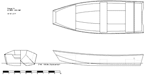 I drew this boat with the idea of building it for myself, but since I sold the motor I was planning on using that plan has been put on hold for a while. The plans are to the point that an experienced builder could get it together. With proper encouragement and enough interest, I would get them to the point where a less experienced builder could get one together. Any readers who were seriously interested in this boat can write me at smallboatdesigner@mindspring.com if they'd like to explore this design any further.