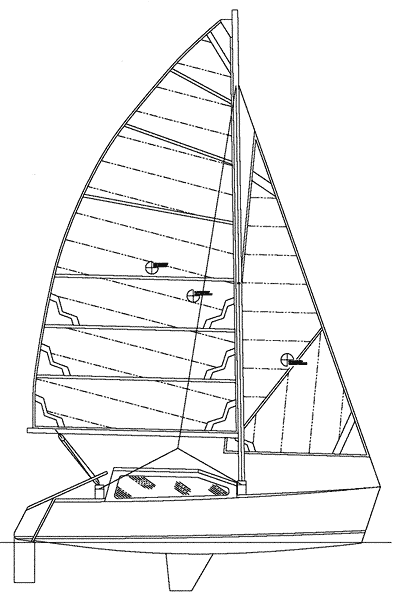 Small catamarans must be sailed with a degree of caution as if they are to have enough sail area to perform well in the lighter airs and flat waters they will spend most of their life, they will have enough sail area to capsize them in strong winds if not sailed sensibly. This is true of all small cats, including "Zubian". Accordingly, her sail plan has been designed to allow the mainsail to be easily reefed - the first reef will go in at about 12 knots wind speed - and for the headsail to be dropped without going onto the bows.