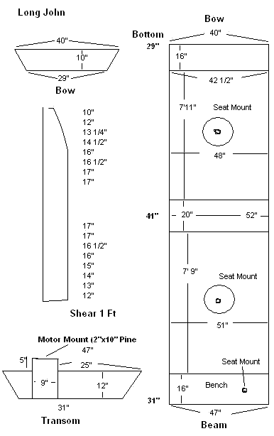 at the bow. Note the bottom is not a rectangle - narrows at