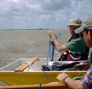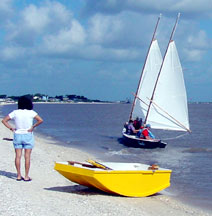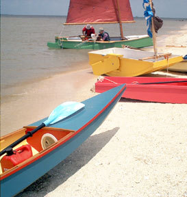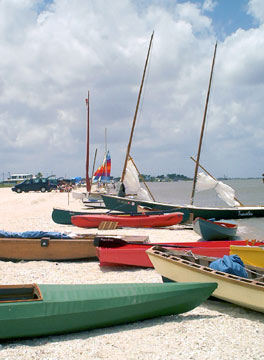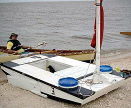 Roger Harlow and his wife, Gay, drove over from Portland, TX, bringing a Bolger Surf. Roger has built a number of boats.