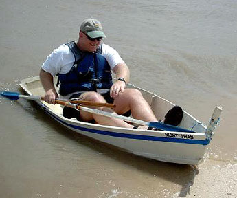 Shorty tries out the One Sheet Skiff "Night Swan"