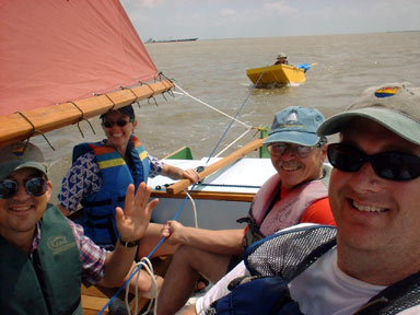 Jerry Mittelstaedt, his wife, Mona, son Joseph and friend Dave Hetrick came from McAllen, TX with their self-designed skiff, Ocean Breeze. They also brought a Sabot and their one-sheet skiff, Night Swan.