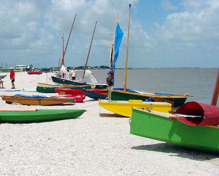 Without the near constant wind, the Texas coast in summer would be unbearable on a sunny day. Even the cooler early mornings and evenings would be tough to take without the wind because the big mosquitos would literally carry one away. Sailing would be hampered as well. The day was gone in a flash of sails and oars and good conversation. After a delicious potluck dinner Saturday night, those of us who had not already left, visited until we could no longer hold our eyes open. Sunday was yet another beautiful day, but we had miles to travel, and by 10:30 we were loaded and on the road for home.