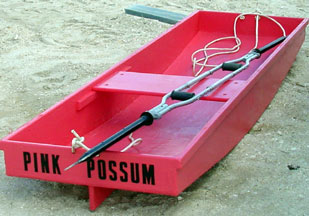 Cecil Carnes, from Los Alamos, NM and Sargeant, TX, brought his self-designed Pink Possum with the creative double paddle made from a crutch, as well as Calapso.