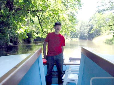 Below is a picture taken by John Kohnen of Bob Larking and his Mill Creek 13 (Bob has a sail rig for it, but didn't use it there). With his ultra shallow draft and maneuverability Bob was leading the Tour and was usually too far ahead for me to get any good pics of him. He was also able to venture further up the Creek and River than any of the rest of us.