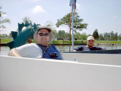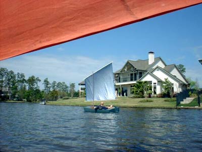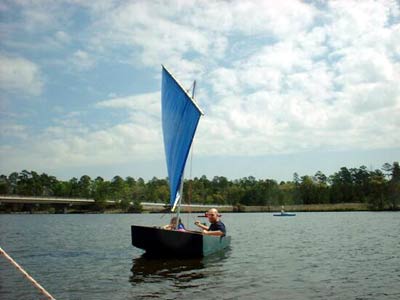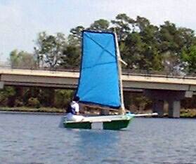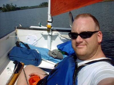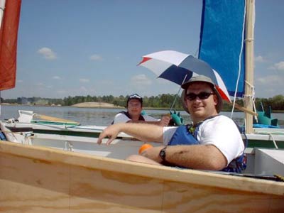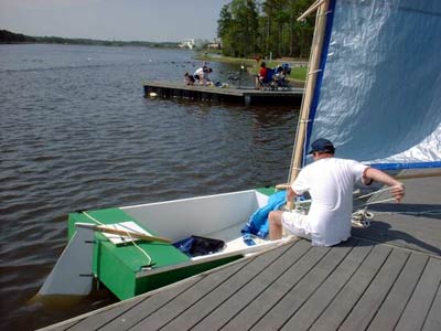 EERRRRR... I mean sprit sail rig on his PDRacer. Doug and I