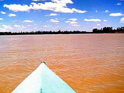 I've been paddling the Huntyak off and on for several months now and really like it, a very stable craft. I had it out on several trips so far as well as doing a few 4 km exercise sessions per week on the local lagoon. On the last trip I took the Huntyak out on Teresa Creek Dam [our local water supply reservoir] on a Sunday. I thought it might be good for my wife to get out with me on the water. The main area of the dam is about 1.5 to 2 km across but there are several feeder creeks coming into it and they go for several miles each. The water is a light brown colour, much like the mud was on the top instead of on the bottom. They reckon that the Dam will need to be flushed out several times before it comes clear again.