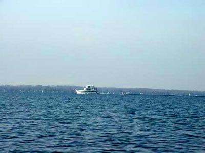 On November 10th 2003, I was missing the open water already I had not been in the boat since the Kingston Messabout in September. I had the day off and needed to winterize the boat. The sun was shinning and the wind was low so I started to think of taking one last run. It was 7°C or 48°F. I took the boat up to Lake Simcoe about 15mins up the road from home.