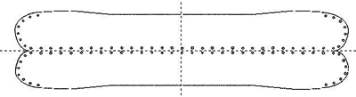 To glue the rounded planks, we have to sew through the ply planks cut as it is more or less shown in the Image "A Cutting the PLY". It's for this reason that we dont have to make holes in the straight borders of the halves, borders which will become the bottom of the canoe. This part of the canoe will be glued by the planks (the rounded and longitudinal ones, and the transversal one).
