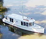 and gets about 5-6 mpg at a 7.5 knot cruise on 60 hp. All this