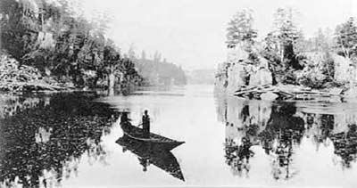 Some village friends stood upon a promontory lower down the stream to wave us a last farewell; but we, having already performed these shore rites, with excusable reserve, as befits those who are embarked on unusual enterprises, who behold but speak not, silently glided past the firm lands of Concord, both peopled cape and lonely summer meadow, with steady sweeps. And yet we did unbend so far as to let our guns speak for us, when at length we had swept out of sight, and thus left the woods to ring again with their echoes; and it may be many russet-clad children, lurking in those broad meadows, with the bittern and the woodcock and the rail, though wholly concealed by brakes and hardhack and meadow-sweet, heard our salute that afternoon.