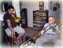 In his younger years Mr. Vern had been a professional musician. "Maybe I can get Dusty to come over," I suggested. Dusty is a young man who plays in an amateur trombone band. Dusty is also a budding woodworker and had wanted to come over and work with me on my own boat.