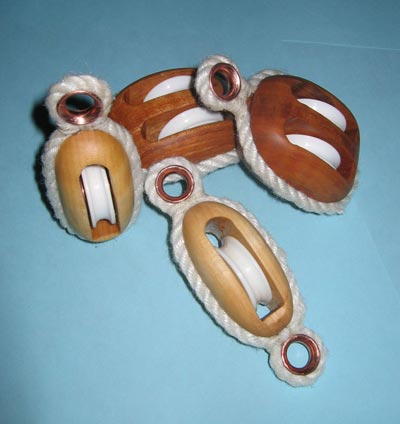 Thought you and you readers might be interested in my efforts at producing home-made seizing twine for these rope-stropped blocks: