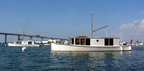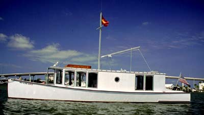 Florida holds a wide variety of cruising grounds from very protected canals to wide open lagoons and bays. Because the sun is so hard on wooden boats down south there seems to be less of us there. This makes for a lot of attention directed our way when ever we get to the dock. We went south until we got to Stuart and then headed across to Florida's west coast via Lake Okeechobee. One of our goals was to show the boat to the designer, Mark Van Abbema, and maybe get a photo of the two boats together.We pulled into Ft. Myers Beach harbor and found Mark on a mooring there. He stuck his head out the window and said "nice boat". We quickly fell in tune with the local customs which involves "Happy Hour" at Bonita Bills, the local watering hole, and figured out the local public transportation. After two weeks we pushed on to the Keys, a run across Florida Bay of 45-50 miles, dodging the crab pots the whole way. After five days waiting out thirty knot winds in Boot Key Harbor it was on to Key West. A note about Key West: Anything you have ever heard about Key West is true. After spending a week and taking the obligatory pictures of us at the southern most point in the continental US (a big Buoy marks the spot) it was time to head home. We stopped at Ft. Lauderdale (where I was born and raised) for a few days and watched the truly rich come and go in their 100' plus boats, excuse me, yachts!
