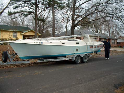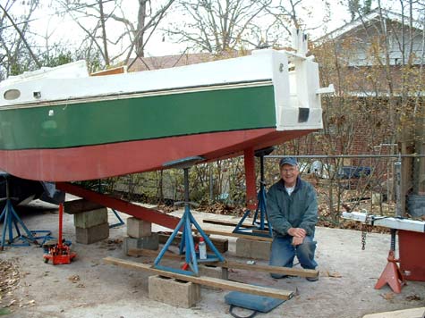 My friend, Tom Cole, visited me for a couple of days and helped me remove the keel from my 14-yr old Micro. He has a “new” Shearwater and pulled it along to our house so I got a chance to go for a sail in it. Bolgerites might be interested in my Micro keel and in the Shearwater, one of Bolger’s rarely built but fine designs.