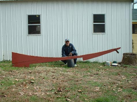 When I built Frogger, I was leery of a hollow keel with water flowing in and out through small holes. What if this wood were to begin to rot?? How would you even know it was rotting until it was too late? I did not have much experience with epoxy and how effectively it can seal wood and keep the water out. Instead of building a hollow keel, I built a solid one. My brother, Tom, who has vast boat building experience, designed the keel for me. It is built out of 4" x 12" header material, planed down to 2 inches. I had that done at a wood shop which has a industrial strength plane. This generated a lot of wood chips.