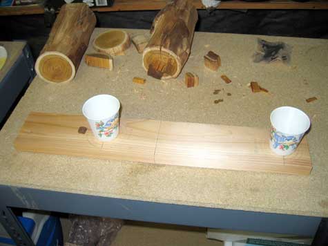 Joe's scale is probably a bit quicker to use for a specific volume of mix, especially since you can quickly slide the cup against the stop and start pouring. And, since the distance from the pivot to the cup is flexible, the stop works with variable size cups. My version requires precise placement of the cups since the proportion relies on the distance from the cups to the pivot point.