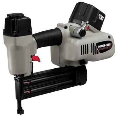 The Air Nailer is built to very high standards and comes with a nice case, oil for oiling the nailer each and every time you pull it from the case to use and a few packs of brads. It takes brads from ¾” to 2” and the stainless brads are much tougher than the regular Porter-Cable brads. If you where building cabinets the Porter-Cable brads would be perfect. It has one twelve volt battery pack and a quick charger that charges the battery in an hour. I would buy one more battery because the nailer runs for just about one hour when in hard usage. With the nice carrying case you can keep it all together and there is plenty of room in the case for eight packs of brads along with everything else.