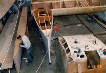 The hulls are built on seven bulkheads, five stringers and very important a backbone former piece.