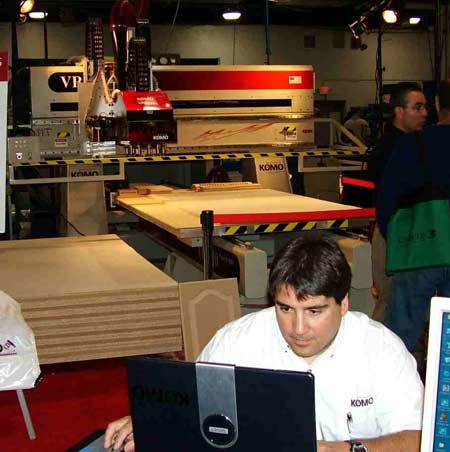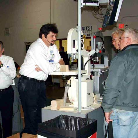 While most of the exhibits focused on large scale production and companies, a decent portion was applicable to the small shop and a few were specifically for that market . . . and the individual user. This was proven, at least to me, by the surprising number of Amish in attendance ! I always like to add to my catalog/knowledge base, plus I was actually LOOKING for some specific information on the LOCAL availability of certain hardwoods, a specific ‘new’ wood, and MDO. There were a couple of exhibitors of particular interest that I had noted in the pre-show literature. After that, I just started at one end of the hall and worked my way up & down the aisles to the other end.