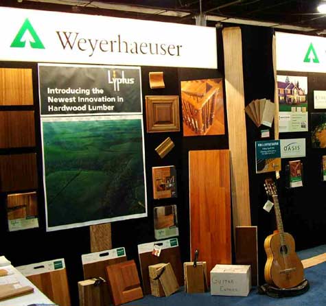 One ‘conversation’ really impressed me. In the last several months there has been some mention of a ‘new’ wood on the woodworking newsgroup . . . Lyptus. There was even a magazine article about ‘Substitute Woods’ that gave brief details. However, I wanted to know more with specific questions answered. As I passed the Weyerhaeuser booth I noticed an entire wall panel with that heading. I introduced myself, and indicated my small ‘purchasing requirements’. It didn’t matter. We spoke for 30 minutes or more. He gave me SPECIFIC answers and more detailed literature than the typical buying customer received. He even directed me to a couple of his local ‘customers’ who handled this species - told me to use his name, Chuck Felak. I came away with a sample about 12 inches long.