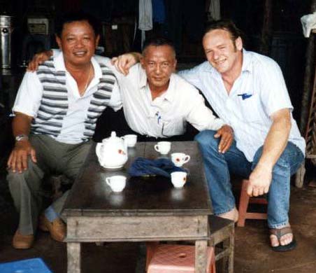 Within minutes of the first man's offer I hade several others, "fifty percent" they would say and I was obliged to drink it. I really didn't want to offend such nice people. I asked Ngon if they were trying to drink me under the table. "No, never. These people would never do such a thing, but they feel you have honoured them by attending the party, no westerners do such a thing" Well, screw it, I may as well get drunk. After an hour some of them were swaying and Deng, a prawn farm owner, offered to show me his farm. This saved me the embarrasment of collapsing in a pile. I was one drink away from it.