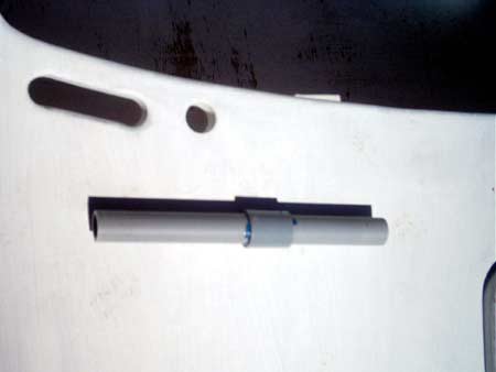 Since I am so enamored of belaying pins and didn't have a lathe or a lot of time, I came up with the items in the attached pictures. Bob's belaying pins are a sexy "nautical" gray (3/4 inch PVC conduit from the Home Improvement house) and very easy to make. I just bought a 10 ft piece of conduit, some matching unions and some PVC pipe cement. The top piece was cut to 4 1/2 inch and the bottom was cut to 6 inches. Assemble per directions for plastic pipe.