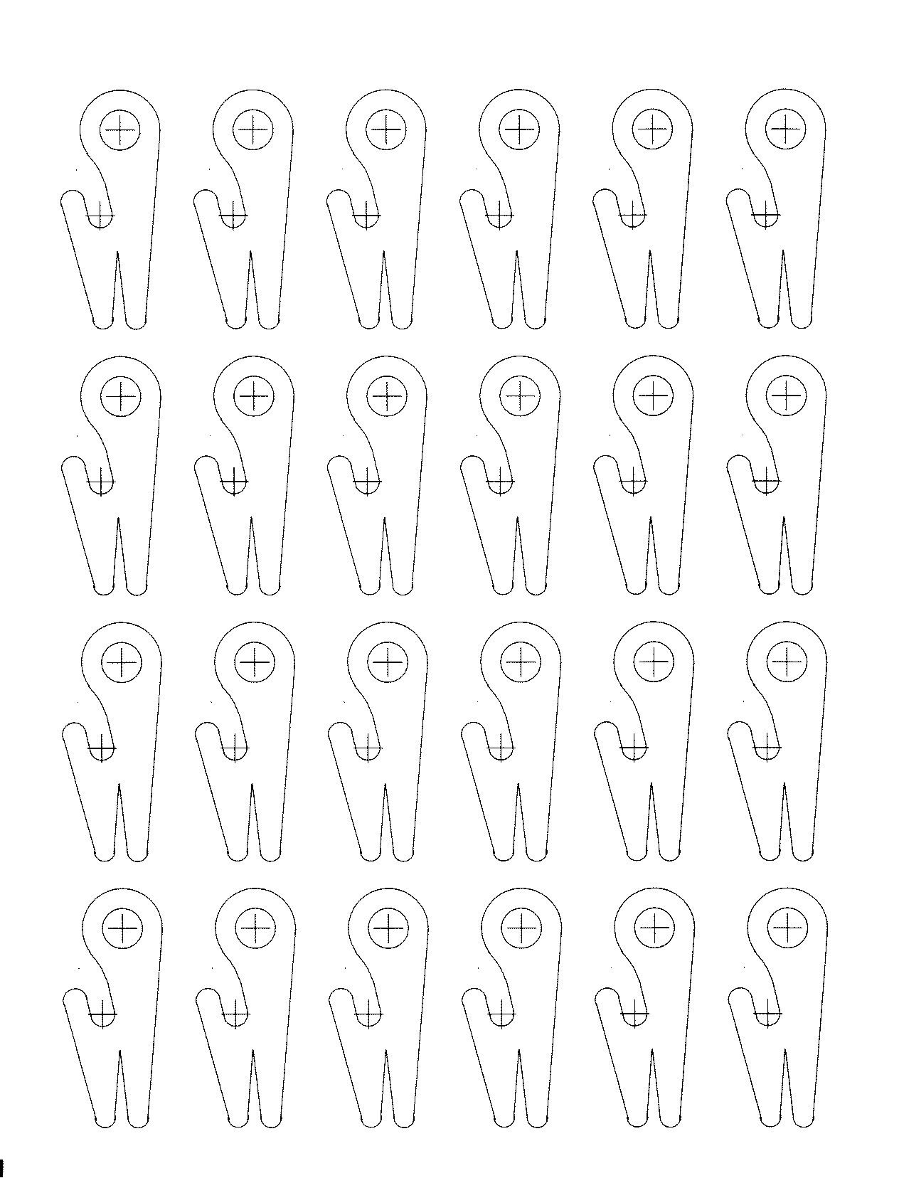 It is a page of 24, 2 1/4" X 1", cleat patterns which can be printed and then attached to any appropriate 1/4" thick material with spray adhesive and then cut out. The large hole is 1/4" beveled both sides with a 1/2" countersink and the small hole is 3/16" or 1/4". Best to drill the holes before cutting out the cleat. Enlarge or reduce the printout to suite your needs. I found they are wonderful for securing a tarp over the boat.