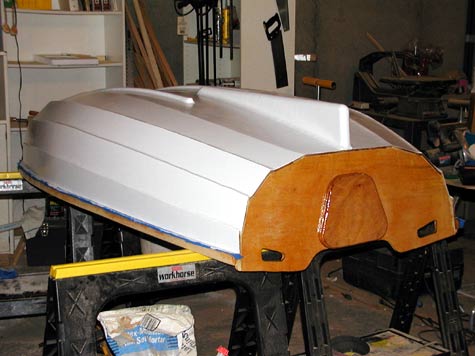 I am painting and varnishing my Eastport pram (CLC boats) presently. I finished construction in September, but work got fairly busy until recently. Below is a picture of the outside of the hull after two coats of epoxy, one coat of primer, and two coats of exterior latex. I finished the outside with one more coat of the exterior latex and now am working on the interior. A beautiful little design and excellent building manual from CLC. Their LapStitch brand approach makes lapstrake construction accessible to an ordinary guy like me.