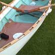 After painting another three layers, this is the finished Joansa, over 60 kilos of boat, including the silicon bronze oarlocks. |