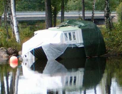 Sending a couple of pics of my boatproject "Kraken", a houseboat-ish craft for sheltered waters. Have made some testruns, and it works ok, very stable and slow, but a more powerful outboard motor is at the top of my list to santa, my old 2,5 hp Tohatsu is clearly to small. Hull is aluminium, cabin mainly plywood and fir. The windowframes are really low budget, plastic boxlids "slugis" from IKEA, with the center cut out and glass fitted and glued, works so far, no leakage. Fixing the interior is next, benches, kitchen etc.