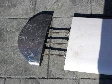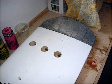The project was to put a lead “jelly tip” on the end of our Navigator Kotuku’s centre board and had nothing to do with an “anchor”. We used the existing centre board to make a concrete mould, mounted the SS rods in this mould, poured the lead, chopped off the appropriate length from the centreboard, drilled the holes and then bolted them together. The “U” shaped trident was set 150mm into the lead leaving three 150mm long threaded rods exposed (see the photos below and sketch above).