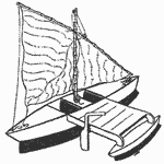 His proa came about from salvaged odds and ends when he was living in Hawaii and needed a way to go fishing. His sail was a simple equilateral triangle, yard only, that pivoted at the masthead depending on which direction the shunt went.