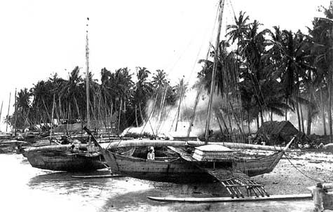 “Stand on the outrigger side of one of these canoes that has been correctly built and you will see what I mean. It is the two ends, rather than the two sides, which are exactly alike. These identical ends serve alternately as bow and stem, and the outrigger is always on the windward side when the boat is under sail.”