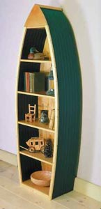 Now some might wonder if this craft is all that seaworthy. After all a lot of spray would kick up and it would be a fair weather table at best. I suppose one could tie some tarps between the legs to keep the spray out but it would be simpler and probably cheaper just to nail some plywood to the legs. Trouble is when you go to the boat launch you would run into some ‘boaty’ type know it all who would likely point out to everybody that you were going to sea on a dining room table! So it might be best to disguise the table as a boat. How, you might ask, is this possible? I was at a loss myself but I accidentally came across plans for a ‘book case’ that will work well. I found the picture on the right at: www.how-to-plans.com which gave me an idea how to disguise the table as a boat!