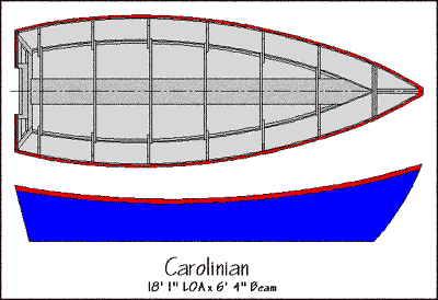Accommodations are merely the number of people that can be seated at the table. This determines how long the table has to be. Now when it comes to building a sea going table the problem gets easy as plywood comes in four by eight foot sheets and why cut any more than needed? The table/shelves will be four feet wide on the bottom! So how long will it be? Well, you need six feet to lay down and maybe three feet to sit and steer, three feet for an anchor locker and storage up front, five feet for a cockpit, and about three feet for an engine well (I recommend this latter item especially if Jim Michalak and Max Wawrzyniak have been a bad influence on you and you have a collection of old outboards in varying states of operability) An engine well as pictured above in the Carolina dory boats lets you remove and replace an engine or do minor repairs without hanging precariously over the bottom shelf of your bookcase …I mean table …disguised as a boat. So I suggest about 18 to 20 feet is a good length ….mainly because that’s as big a table or book case I’d ever want to build! ….and that’s all that will fit in my shop with the door closed.