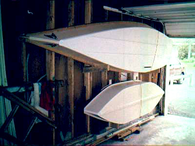 behind the boats between the wall studs. Spars and