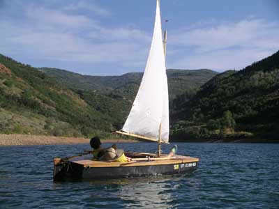 If you’re looking for a simple, effective sail rig, you really should consider the balanced lug. It's a very forgiving rig and it tacks like nothing I've seen, which is a real consideration on an ultra-lightweight boat, especially with a kid at the helm. The balanced lug also has a low Center of Effort and doesn’t require a long mast, in fact, all of our spars came from 8-foot stock. One of our sails was sewn from a Sailrite kit and the other was purchased from Duckworks. The Sailrite sail was quite a project to put together. Since it has more panels than the Duckworks sail, I expected better performance from it, but I’ve sailed both boats a number of times and I’ve watched the boys race them and I can’t see that there’s any performance difference between the two. The kit cost about the same amount as the custom Duckworks sail.