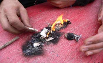 plastic bags into a fire on the bottom of Rodman’s