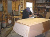 Now remove the hull from the 6x6 and throw it away, you will no longer need the 6x6. Cut off the excess luan leaving 1/4" excess bead to be sanded smooth.